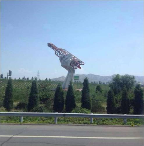 途徑董存瑞的故鄉(xiāng)懷來,那只手拖著個***就是城市的標志