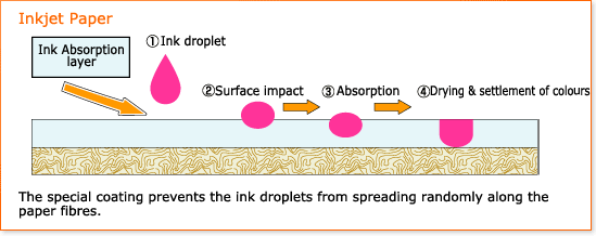 吸墨方式 | 聚合物涂層膨漲 | 涂層中的微孔和紙張纖維 | 涂層中的微孔 |